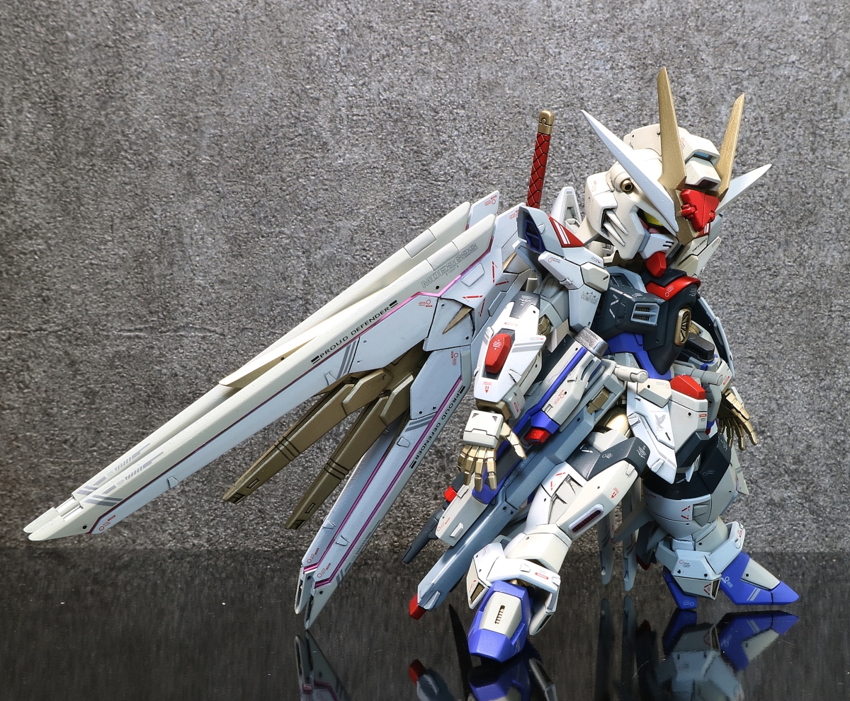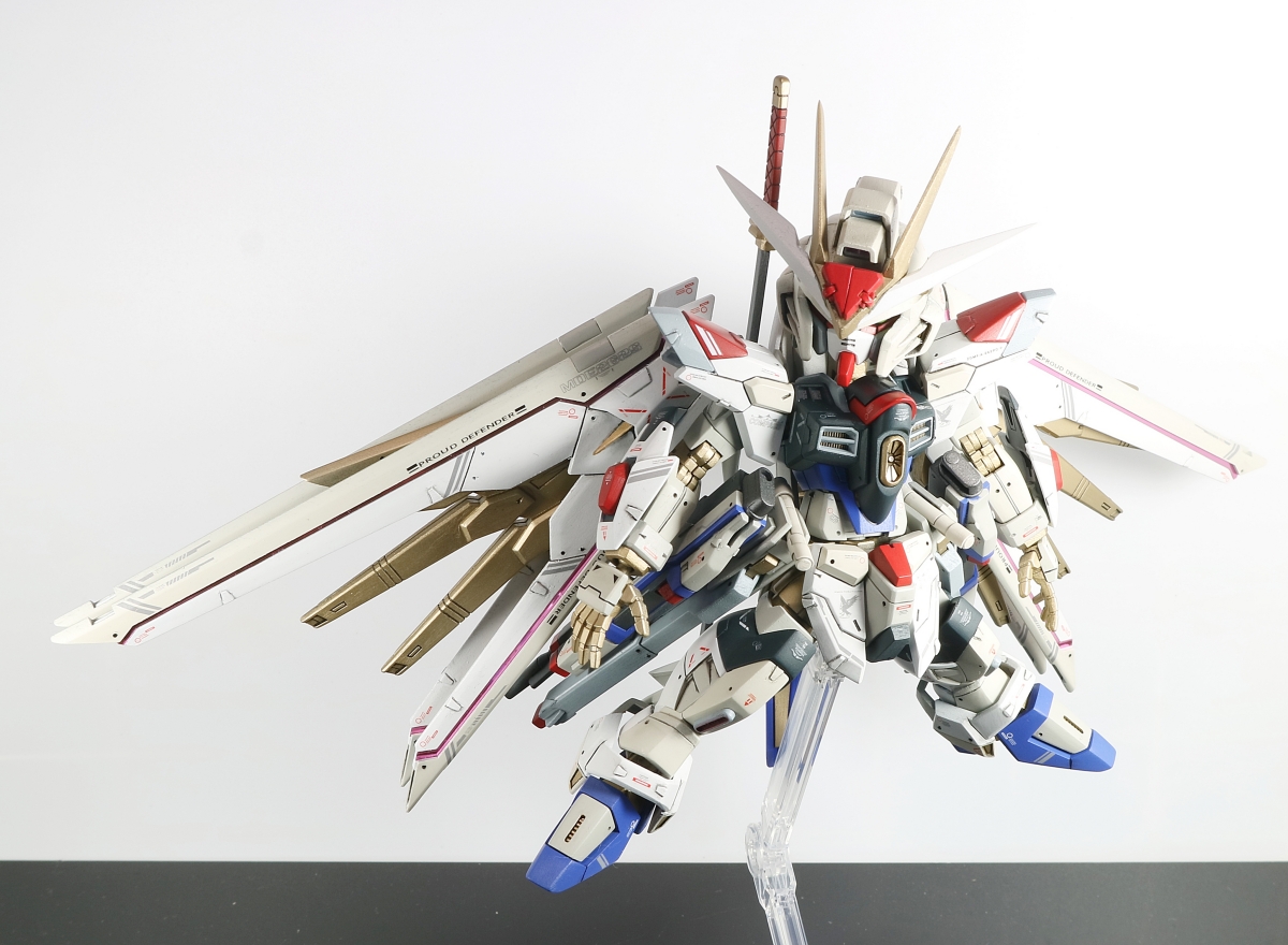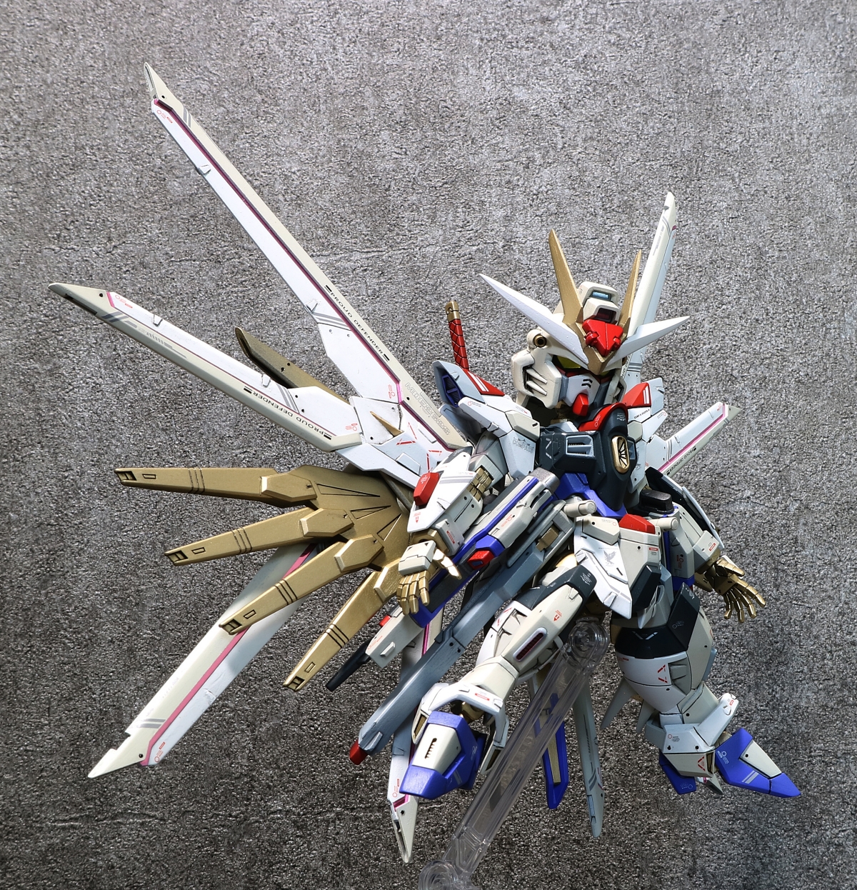 「SDガンダム クロスシルエット マイティーストライクフリーダムガンダム」+「HG マイティーストライクフリーダムガンダム」とのミキシング製作になります。