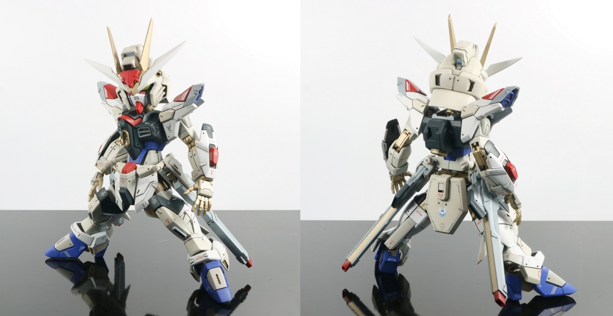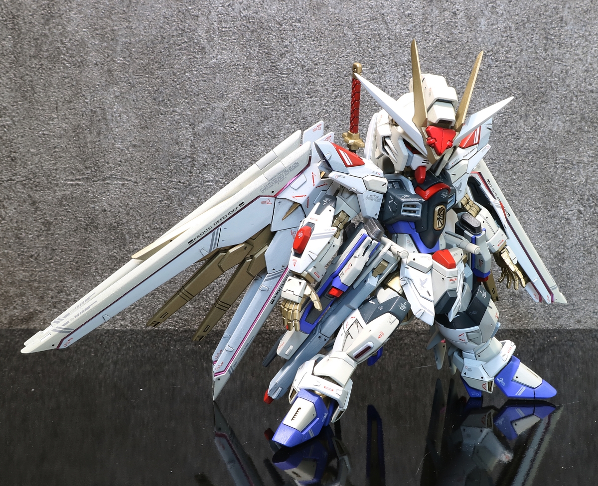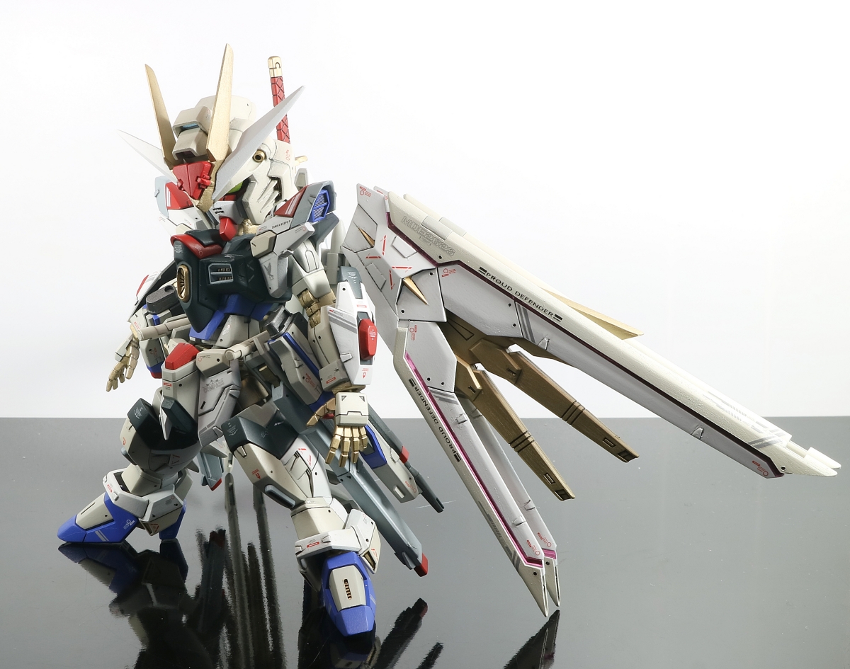 「SDガンダム クロスシルエット マイティーストライクフリーダムガンダム」+「HG マイティーストライクフリーダムガンダム」とのミキシング製作になります。